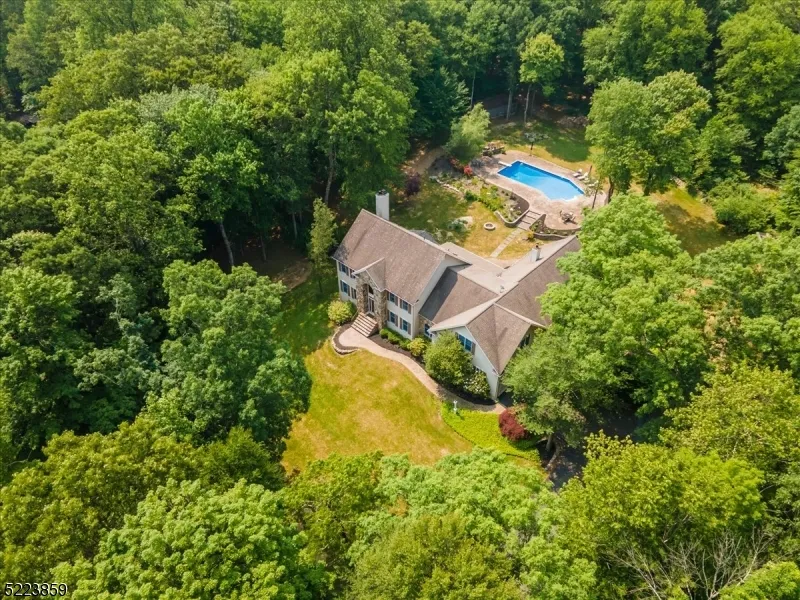 This is a rare opportunity to own this exquisite private multi-generational home! A private, serene sanctuary, tucked away on a quiet cul-de-sac. The Custom Colonial is situated on 2.3 acres with 3,750 sq. ft of living space! And, this does not include another 1,150 sq. ft of newly renovated separate living space with a flexible floor plan, a full kitchen and separate entrance. Currently being used as a rec room and it could easily be an in-law suite with full ADA bath capabilities. It could also be a home office or a studio. The spacious 5-bedroom colonial with a newly renovated kitchen and open- floor plan. A newly built large covered deck for entertaining that overlooks a private backyard with heated pool. Easily accessible to a private wildlife preserve-Wild Cat Ridge. For complete backyard privacy and miles of hiking. This home has two master suites, the primary suite has two large walk-in closets plus a cedar closet. The second master suite is 750 sq. ft. The two-story foyer with a stunning chandelier and front window, soaring ceilings, stone fireplace, new radiant heated hardwood floors are just some of the amazing features of the home. The partially finished basement with an exercise room has myriad possibilities. This home is minutes from Denville downtown and Train Station, Rockaway Mall, and major highways.