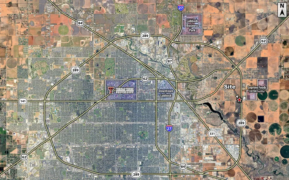 Large development tract in east Lubbock with Loop 289 frontage offers a strategic location for diverse development opportunities. This site is positioned near the upcoming Leprino Foods Cheese Manufacturing Facility, an $870 million investment projected to create approximately 600 jobs and 200 milk trucks per day, bolstering the local economy. Additionally, the nearby Hope Center will enhance community support services and contribute additional. With utilities readily available and direct access to major roads, this land is well-suited for a variety of development prospects.