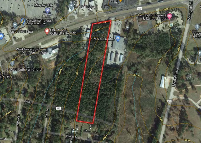7 +/- of Wooded Acres offering approximately 260 feet of Hwy 190 Frontage