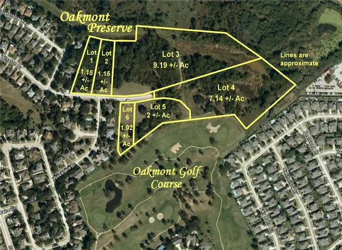 Oakmont Preserve is a 21 acre, 6 lot, gated community with large mature trees and over 1,100 feet of Oakmont Golf Course frontage. Secluded location in south Denton at the end of a cul-de-sac. A perfect setting to build the home of your dreams! Plat pending. See plat for future gate and wall improvement locations.
