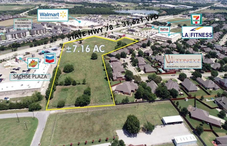 The tracts consist of 7.16 acres on two adjacent parcels on Hwy 78, the primary retail corridor and connector to other major thoroughfares in the area such as the President George Bush Turnpike offering direct access to downtown Dallas. The Propertys location offers excellent visibility and access and benefits from approximately 31,621 vehicles per day along the busy highway. The Property is currently zoned C-1, Neighborhood Shopping District and allows for very permissible uses including retail, restaurant, general office and medical office.