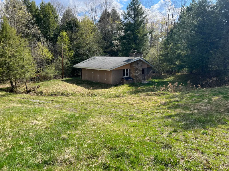 This is a very attractive lot with a nice mix of lawn and wooded acreage. There is a solid block building that could be transformed into a nice bunkhouse or cabin. The building features one large open room with a stone fireplace and could be a neat camp with your imagination. There is currently an outhouse with a privy tank on site but public sewer is available nearby. The large lawn is slightly sloping but suitable for several campers or tents. In the woods you will find a neat chapel with seating and a steel roof. A water well would be the responsibility of the buyer and electric is also available nearby. If this sounds like what you have been searching for, reach out to the listing agent today for additional details or your personal tour!