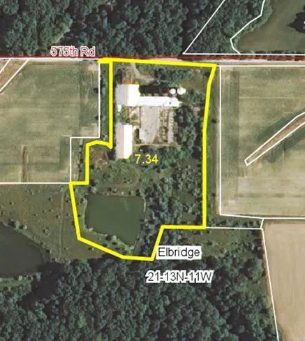Building site of 7.32 acres with 1 acre pond. Building site contains a machine shed, open front bunk feeder, pole shed, two harvestore silos, one concrete save silo, and large concrete feed floor.