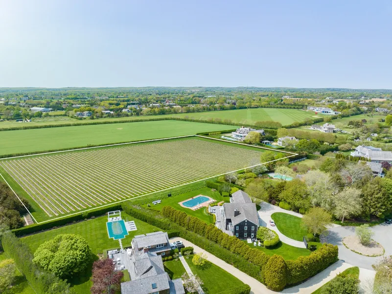 7.4+/- acres in Bridgehampton South, currently being used as a fully functioning private vineyard producing 10,000 - 12,000 bottles of Sauvignon Blanc, Sirah, and Cabernet Franc. Elevating this exceptional offering, plans are designed for a spectacular tasting room, envisioned by the renowned Hamptons design firms Stelle Lomont Rouhani Architects and LaGuardia Design