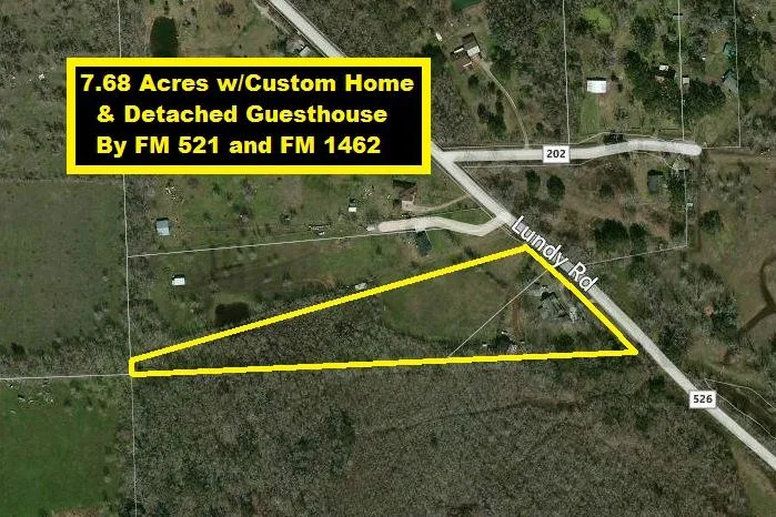 Partially wooded 7.68 Acres w/Beautiful Custom Home, 728 sf Detached Guesthouse Apartment, 23x28 Attached Garage, 40x15 Shed and 2160 sf 2-Story Detached Garage w/36x30 finished 1st floor, 36x30 finished 2nd floor, 36x30 covered patio & 36x30 roof deck. Home has 166 sf screened breezeways, 20x28 screened patio w/surround sound wiring, water softener, SS appliances & attic w/floor decking. Master Suite has vertical spa system & 6' whirlpool tub. Renovated well in 2011, energy weatherized in 2010, remodeled in 2009 w/new roof, mechanical, electrical & plumbing. Video camera/surround sound in home & guesthouse. Property has circle driveway & many pecan trees. Close to Proposed Grand Parkway! See Map & List of Property Features under Docs!