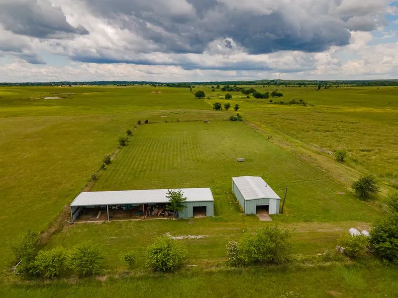 Looking for a homesite and/or a place for a home based business? Check out this 7.78 on county rd 4000 just 4 miles N of Vera. (2) red steel buildings; 20 x 40 with concrete floor, insulation and propane heater and 20x60 gravel floored3 bay impletment shed with 20x25 enclosed with concrete floor. Has water and power. Great place to bring the mobile home or build. Horses and livestock permitted.