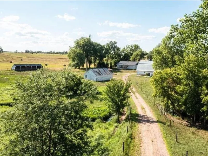 The driveway into this property leads you into the most relaxing get-away property sitting on 70+/- acres. Big Springs Creek runs through the property that also allows the chance to view an abundance of wildlife right from the front porch. It also has 2 ponds. This property is a true oasis and has ample opportunity within. There is potential for a permanent residence, an Airbnb, or even a private get away property. The barn has been redone and has potential for a venue as well as other avenues. Next to the barn is a small playhouse that is built well and is very neat. Also located on the property is a shed that would be a perfect place to store a mowing tractor and any other supplies. With a screened in grain bin firepit area, you have the perfect place to sit back and relax in the evening. This home has a large front porch that is as welcoming as can be. Walking in the side door of the home, you are welcomed into the mud room. This is a great place to kick off shoes and leave hats and coats rather than carrying inside. This is also where you will find access to the basement. Through the next door, you enter into the dining room. This home has an open concept floor plan, leaving the dining room open to the kitchen and living room. The kitchen is beautiful, spacious, and features heavy custom-made cabinets with a large island. Right off the kitchen is the laundry room carrying over the same custom cabinets found in the kitchen. The living room is spacious and features access to the front porch. Just off the living room is the 1st bedroom, which is great sized with a nice closet. The 2nd bedroom also features a closet. The master bedroom is very spacious with a good-sized closet. Right off the master bedroom is the main bath, which is large and features a beautiful, tiled walk in shower and a vanity with plenty of storage. Don't miss out on all the opportunities this property has to offer!