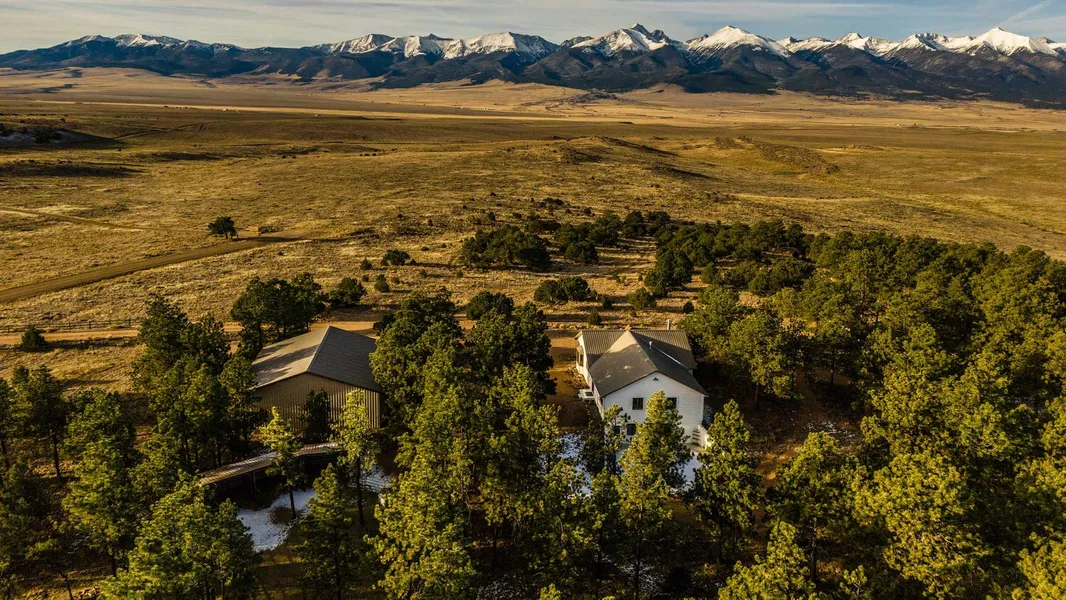 The CA Ranch is located south of Westcliffe, Colorado and sits above the Westcliffe Valley offering stunning views of the Sangre de Cristo Mountain range. This 70-acre ranch folds naturally into the landscape and the home is filled with natural lighting and views throughout every part of the home. Enjoy the expansive Colorado skies, wilderness, and towering Colorado Pines. Improvements include a 3,774 square foot, four-bedroom, three-bath home, 40 x 40 square foot insulated steel building plus three loafing sheds.