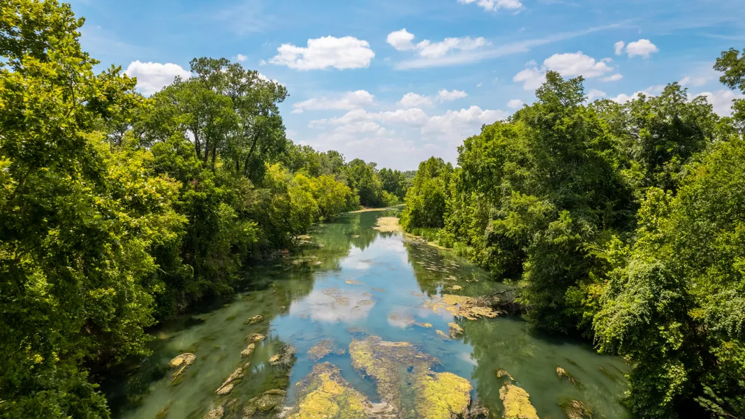 The ranch showcases rolling topography that slopes from north to south. Native pecan trees, cypress trees, and elms fill the riverbanks, while oak trees can be found on the landscape further away from the water, adding to the ranch's natural charm.