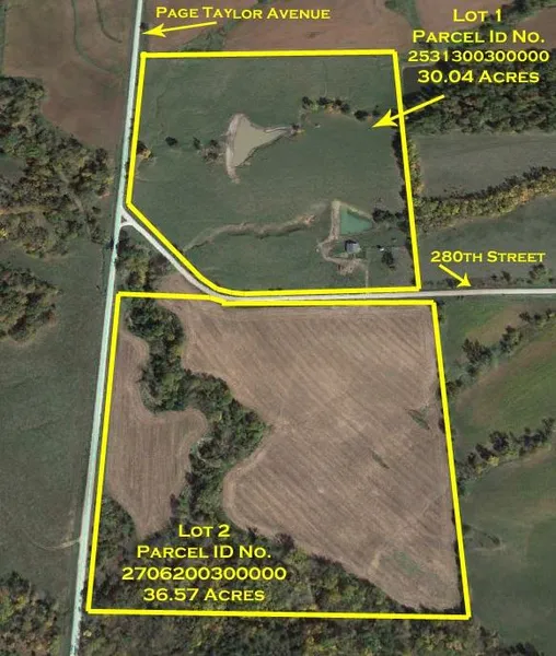 Lot 1: The north side of the property is +/- 33acres, and isaturnkey cattle operation.Well maintained pastures and fences, two stockedponds, a grain silo, a likenew metal building with a corral, rural water and electric, make thisa must see.The property also connects to a woodlot, and the owner says that it is a "highway" for cruising bucks during the rut. The metal buildingis aneasy remodel into aweekend or hunting cabin.