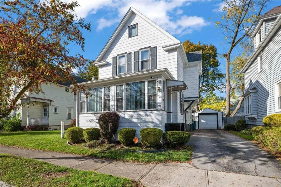 Lovingly maintained 2 bedroom, 1.5 bath home with bonus half bath in the basement located in the heart of the City of Rochester, just minutes from the University of Rochester! Step inside from the charming enclosed front porch into a spacious entryway that opens to a spacious living room and formal dining area. It's the perfect flow for entertaining. The eat-in kitchen features white cabinetry, stainless steel appliances, and a breakfast bar for casual dining. A convenient half bath completes the first floor. Upstairs, you'll find 2 comfortable bedrooms and a full bath. The partially finished basement offers additional living space and the 2nd half bath, ideal for a home office, gym, or rec room. Currently it is set up for a home salon. Outside, enjoy the fully fenced backyard with a newer deck and shed, perfect for outdoor gatherings and extra storage. The property also includes a 1-car detached garage. With its great location and inviting layout this one is move-in ready! It is ready for you to call it home!