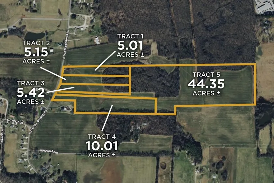 Tract 2 offers 5.15 acres of prime Tennessee land with excellent road frontage on Old Estill Springs Road. This tract is ready for your visionwhether that's building a forever home, creating a peaceful retreat, or starting a small hobby farm. The land lays beautifully with a mix of open space and gentle slopes, providing multiple potential homesites.