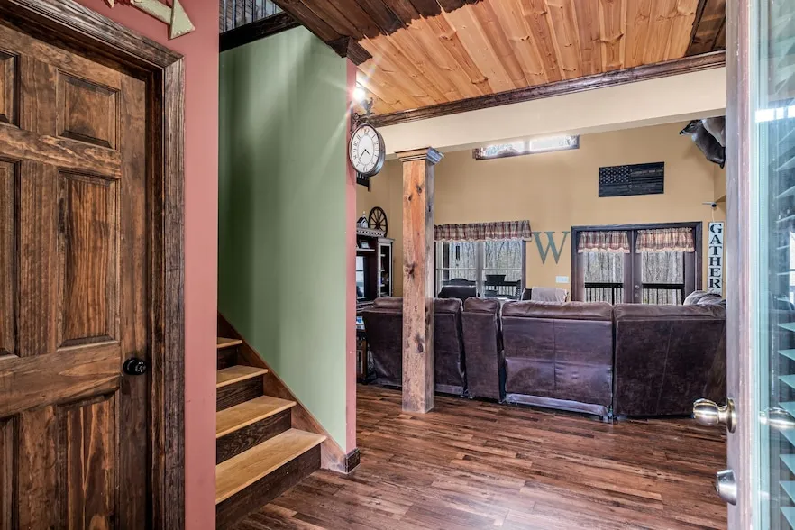 Private and secluded! Long paved drive that takes you to the top of the hill, where you find your own private oasis. Enter the house to a spacious foyer that opens into a grand living room/den with a 22 foot cathedral ceiling. Then you find the large kitchen and dining room area, The home has a great pantry just off the kitchen and then your laundry area. Located just at the back door is a 1/2 bath. on the main floor is the primary bedroom and bath suite, lots of closets. On the second level are two bedrooms with a Jack and Jill bathroom. And a bonus room, could be a play room or office. Home also has a garage with 2 rollup doors. All on one acre.