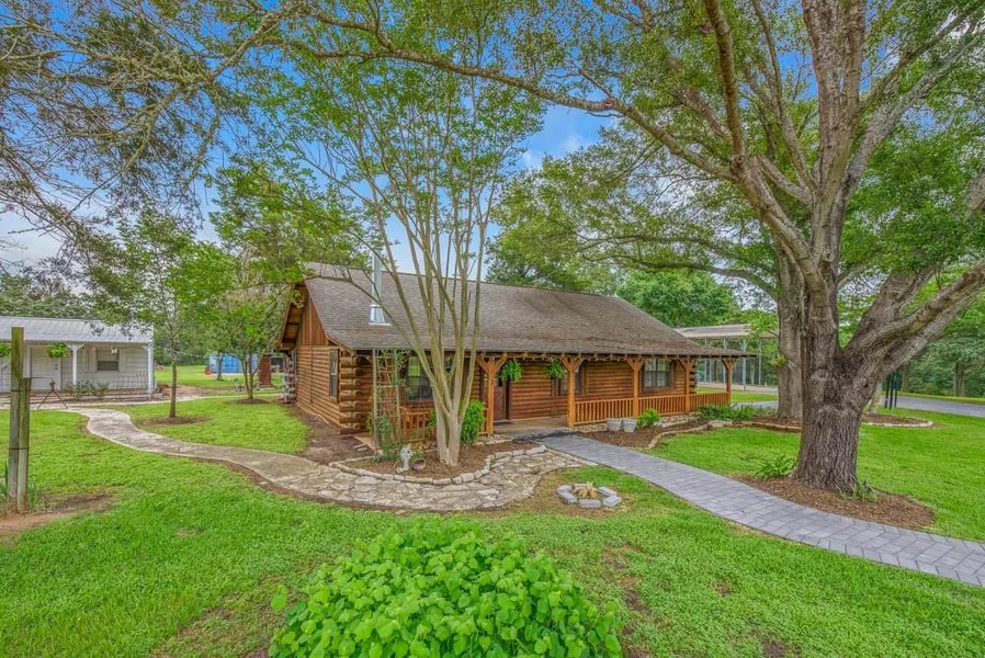 Welcome to your private retreat on 17.6+/- beautiful acres, offering a perfect blend of open spaces and mature woods. This unique property includes two residences and is accommodating for those seeking space, serenity, and flexibility. The main home is a rustic and comfortable log cabin that exudes warmth and charm, featuring natural wood accents, cozy living areas, a gorgeous updated kitchen area, and picturesque views of the surrounding landscape. The 1/1 "cottage" is fitting for extended family and friends, an Airbnb, or overflow for weekend gatherings. Additional highlights include a 18x30 RV station with concrete slab, electricity, water, and connected to septic and a 12x24 storage building. Whether you're looking for a peaceful homestead, a hunting property, or a weekend getaway, this versatile property just 25 minutes to Kyle Field has endless potential. Schedule your private showing today!
