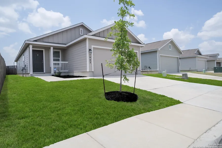 Schedule your today for this opportunity to own a 3-year old home in a gas community, with over 1600 sqft, near Lackland AFB. The community also has a brand-new pool and playground. This like-new home with 4 bedrooms and two full baths, flush-mount lighting, and separated primary bedroom, provides features for your household's comfort, including: a two-car garage, central AC and heat, walk-in closet, ring security devices, a double-door fridge, washer and dryer, dishwasher, an instant water heater, and the benefits of even-heat cooking on your gas stove. Lawn maintenance is minimal, access in and out of the community is quick and easy, and shops/restaurants are less than a mile away. A video walkthrough of the property is online, and the home is available to show today!