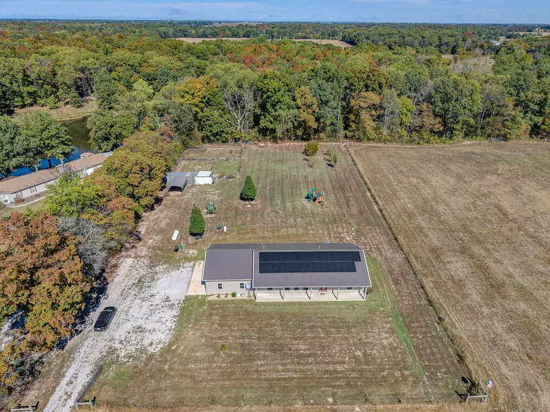Additional features include a storm shelter conveniently located under the attached garage and a generous back patio perfect for outdoor gatherings. This home delivers a rare combination of thoughtful design, sustainable living, and endless possibilities for the ultimate country lifestyle.