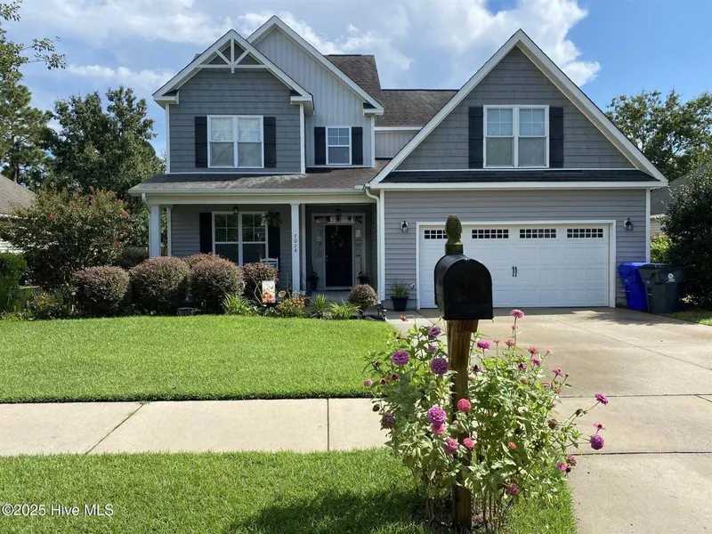 This beautifully maintained 4 bedroom 2.5 bath home sits on a manicured lot in sought after Carrington Woods. The open concept design features vaulted ceilings and a natural flow from the kitchen to the dining and living areas, creating the perfect setting for entertaining. The kitchen shines with granite countertops, stainless steel appliances, and 42 inch maple cabinets. Hardwood floors add warmth throughout the main living spaces while ceramic tile accents the baths. The first floor primary suite offers a relaxing retreat with a garden tub, dual vanities, and a separate shower. Upstairs includes a versatile bonus room with closet that can serve as a fifth bedroom, office, or media space. Enjoy the fenced backyard with patio and a charming front porch that invites you to sit and stay awhile in one of the area's most desirable communities.
