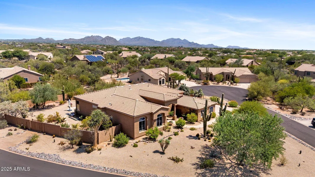 Where desert beauty meets timeless style. Situated on an expansive half-acre corner lot, this stunning Scottsdale home offers high ceilings and an open, airy floor plan. The chef's kitchen boasts granite counters, a gas cooktop, double wall ovens, a large island, breakfast bar, and walk-in pantry, flowing seamlessly into the family room with a cozy fireplace and wet bar—ideal for entertaining. Retreat to the spacious primary suite with a spa-style bath, walk-in closet, and patio access. Three additional bedrooms provide flexibility for guests or a home office. Step outside to your private desert oasis, complete with a heated pool and spa. Located near premier shopping, dining, and hiking trails!