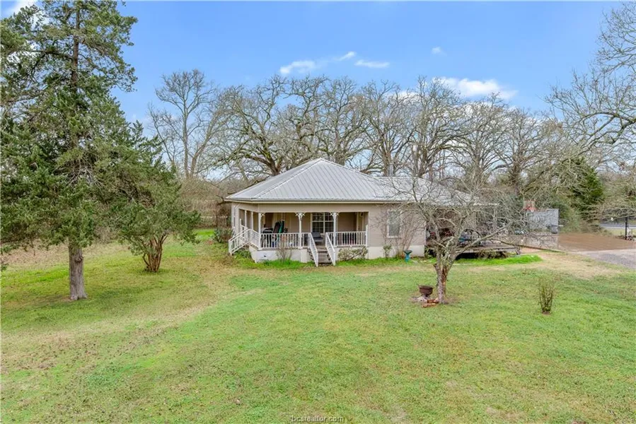 Country retreat on 5.94 acres! Here is your opportunity to own a charming 3 bedroom, 2 bathroom Farmhouse with 2 ponds and mature shade trees. Sitting on 5.94 acres and a perfect setup for horses, show animals and gardening. Offering an open floor plan, tall ceilings, original hardwood floors and a wood burning fireplace. Be prepared for large gatherings in the spacious kitchen with stainless appliances and large eat at bar. Relax on the wraparound porch over looking the stocked pond. Nice metal roof. Slab ready for a shop or she shed. Quiet country living only 30 minutes from Bryan and 45 minutes from Houston. Call today for a private tour!