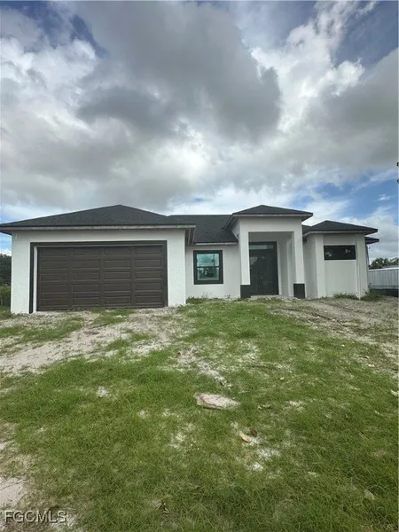 Introducing a meticulously crafted new construction home designed for modern living in one of Lehigh Acres' . This exceptional property features three spacious bedrooms plus a versatile den, a double garage, and a reliable city water supply on an oversized lot. Elegant porcelain tile flooring enhances the durability and sophisticated aesthetic of the interior, while state-of-the-art stainless-steel appliances provide both functionality and style in the kitchen. Perfectly located just one block from Lee Blvd, the home is conveniently near restaurants, shopping centers, and schools, offering an unparalleled blend of luxury, practicality, and convenience.