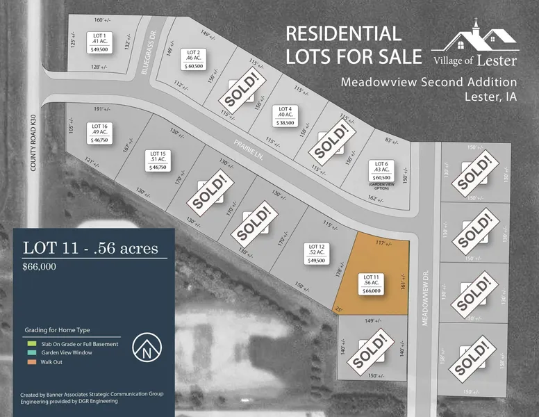 New Lester, Iowa development with several beautiful new homes at or near completion. Perfect chance to build your dream home in a small Iowa community encapsulating all the comforts of "hometown" appeal!! Paved streets and sidewalks, curb and gutter, and city sewer and water. Lot suitable for walk~out basement build..