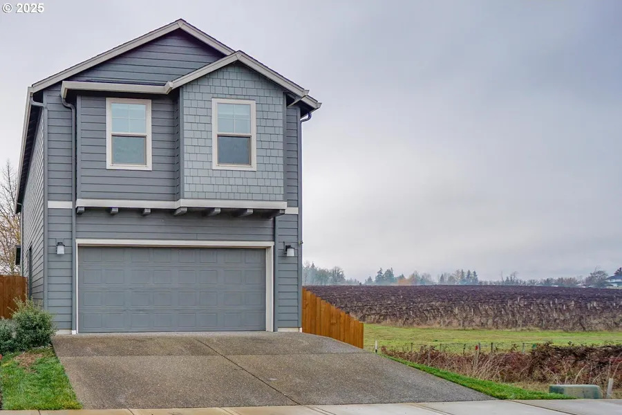 Modern 3-bedroom, 2.5-bath home built in 2022 with a two-car garage, thoughtfully designed for comfortable living and productivity. Enjoy a bright open floorplan with a well-appointed kitchen featuring quartz counters, stainless appliances, and a pantry. Upstairs offers spacious bedrooms with walk-in closet. Outdoor space includes a private deck and low-maintenance, fully fenced yard. Backing to the wetland swell and bordering a vineyard for expansive rural living feel! Located just minutes from I-5, shopping, and local amenities. Move-in ready!