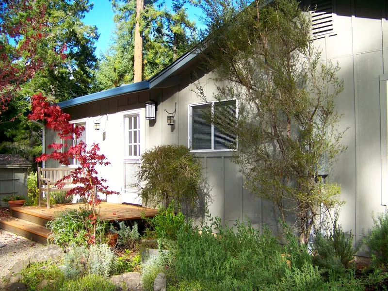 The lovely home with an In-Law Unit over the garage is set in a sunny meadow surrounded by beautiful redwoods. The wonderful ambiance of each home is enhanced by light filled living rooms that center around beautiful wood stoves & open to kitchens with great work space . The sunny fenced meadow offers raised bed gardens & a small orchard (good well). The redwood groves surrounding the meadow offer a special peace & tranquility.