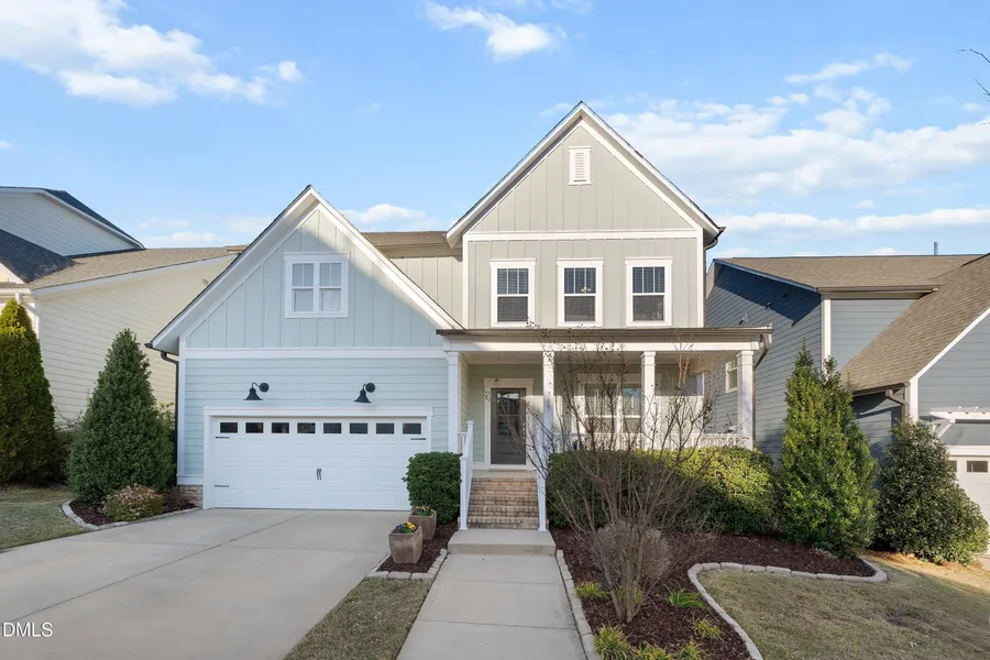 Welcome to this beautifully appointed home in Wake Forest's desirable Holding Village. Designed with a bright, open layout, the main floor features luxury vinyl plank flooring and a spacious family room with a gas fireplace that flows seamlessly into the kitchen and dining area. A dedicated office with a built-in desk provides an ideal space for working from home or homeschooling. The chef's kitchen offers a gas range, stainless steel appliances, quartz countertops, an island with bar seating, a pantry, and an additional storage closet. Just off the dining area, the sunroom overlooks the deck and a backyard with peaceful wooded views. A guest bedroom and full bath complete the main level. Upstairs, you'll find an expansive primary suite with a comfortable sitting area and a spa-like bathroom that includes a tiled shower, double vanity, two linen closets, and a spacious walk-in closet. The second floor also features two additional bedrooms, a hall bath, a laundry room, and an open bonus or loft area perfect for recreation or relaxation. The home includes a two-car garage and is nestled within a community that offers fantastic amenities such as a neighborhood pool, inviting gathering areas, a firepit, playgrounds, historic silos, and a scenic lake. Its location in the heart of Wake Forest places you just minutes from shopping, dining, entertainment, and major roadways, making this home the perfect blend of comfort, convenience, and modern living. Don't miss your chance to call this exceptional home yours!
