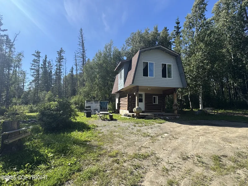 Tucked away off Clark-Wolverine Rd, this log-framed chalet offers rustic style, privacy and Alaskan character on .93 acres. With 1 bedroom and 1.5 bath, this home is move-in ready but leaves room for your finishing touches. The home features wood stove heat supplemented by propane, and a water holding system with an engineered septic. Enjoy a peaceful location surrounded by nature, yet still within easy reach of Palmer. This home would make a great getaway cabin or year-round residence with loads of potential!