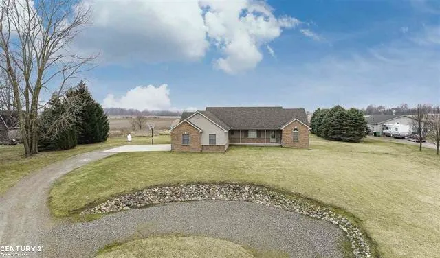 Nice, spacious "split" ranch located on a large near 2 acre lot! Features include a well designed floor plan with the great room, formal dining room & kitchen all open with each other ( light & airy - nice! ). Both Great room & kitchen have a cathedral ceiling. Kitchen features raised panel maple cabinetry, ceiling fan, door wall leading out to the backyard - no rear neighbor, quality built Andersen vinyl clad wood windows, **** very economical GEOTHERMAL HEAT/COOLING system ( saves you $$$ on energy costs - installed 2014 ) ****, 2 1/2 baths, first floor laundry, low maintenance exterior with brick, vinyl trim & siding, big basement with a tall ceiling, prepped for an additional bath, big 3 1/2 car garage with 8' tall steel sectional doors, large shed ( 18 x 12 ) with a concrete floor, excellent Armada Community Schools!! Hurry on this one! Immediate possession.