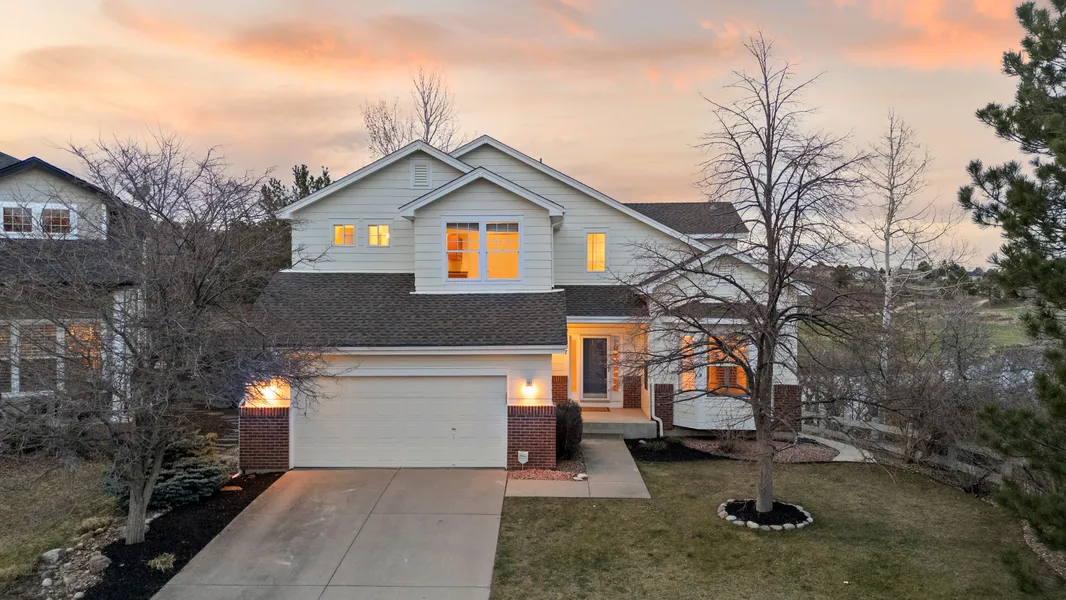 Experience breathtaking views and refined living in this beautifully updated two-story home, boasting over 3,400 sq. ft. of thoughtfully designed living space. Nestled along an award-winning, pristine golf course with a serene lake backdrop, this five bed, four bath residence offers the perfect blend of comfort and elegance. Enjoy the gorgeous Colorado sunsets and full lake and golf course views from your deck! Step inside to find newly refinished hardwood floors, fresh paint throughout, and plantation shutters that enhance the home's timeless appeal. The open-concept floor plan features a spacious living area, formal dining room, family room with gas fireplace, kitchen with island, double-oven induction range, and ample cabinetry. The expansive primary suite provides a peaceful retreat with stunning lake and golf course views, and a new bath tub. The finished basement adds valuable living space with a kitchenette, fireplace, and plenty of room for guests or entertaining. Outside, the south-facing orientation fills the home with natural light. Miles of walking trails are just steps from your front door! A home with such an amazing lake and golf course view is a rare find not only in the Castle Pines community, but in the Denver community as well!