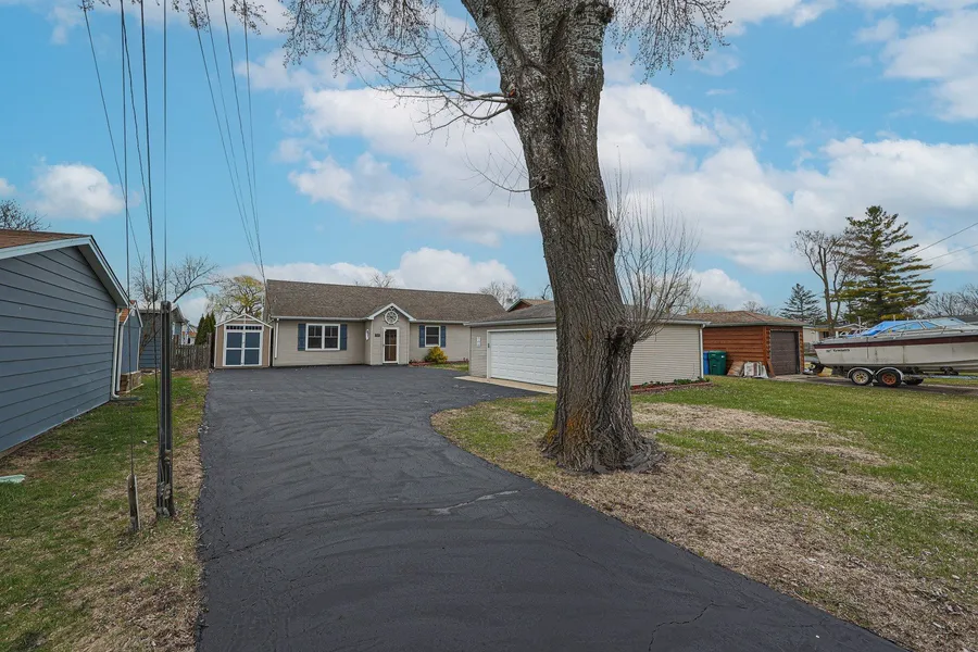 Seller offering buyer incentives. Lakefront Living at its Finest! Pistakee Highlands Gem Discover this meticulously maintained ranch home offering 66 feet of prime seawalled shoreline in the sought-after Pistakee Highlands subdivision. This charming waterfront property combines modern amenities with classic comfort, perfect for year-round living or your dream vacation home. Recently updated with a 2023 roof, this 1,334 sq ft home features an open-concept design with vaulted ceilings creating an airy, spacious atmosphere. The updated kitchen boasts a breakfast bar, island, and will come with stainless steel appliances including a wine cooler and gas cooktop. The living and dining areas flow seamlessly together, offering stunning water views. Three well-proportioned bedrooms and 1.5 baths provide comfortable living space, while the generous 10x19 Florida room lets you enjoy lake views year-round. A dedicated office space, convenient mud room, and main-level laundry add practical functionality. Outdoor living is a dream with multiple entertainment spaces including a deck, porch, and stamped concrete patio. Enjoy summer evenings around the fire pit or grilling on your outdoor kitchen. The property includes a heated 2-car detached garage with 7+ foot doors and a storage shed. Additional Features: Central air conditioning Community well water Private septic system Fenced yard with mature trees Boat slip Outdoor lighting Ample parking with asphalt driveway Located in Fox Lake with easy access to schools, parks, and commuter routes (bus and train available). This property represents the perfect blend of lakefront leisure and modern convenience. Don't miss this opportunity to own your slice of waterfront paradise!