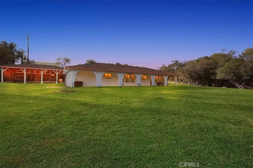 Escape to your very own Horse Lover's Paradise at 7097 Madrone Lane, Browns Valley! This ranch-style 4-bdr, 2-bath home sits on over 13 acres; of which 5 acres are usable flat land with oak trees, a creek, and plenty of space for your animals to roam. Located at the end of a dirt road and down a hill, the property offers ultimate privacy and tranquility. Start your day on the covered porch, the perfect spot to watch the sunrise with a cup of coffee. Newly painted inside & outside as well as, you'll find fresh new carpet and laminate throughout, creating a warm and inviting atmosphere. The home features a large living space with a cozy dining area and a fireplace, ideal for family gatherings. Along with the thick walls around the house keeps it cooler in the warmer months. Outdoors, enjoy the 3-stall horse barn with a tack room, a 25x23 hay barn that could serve as additional storage or a workshop, and fenced areas for animals. The property also has Browns Valley Irrigation District water and ample space for an orchard or cows. A concrete pad for a hot tub offers the perfect place to relax and unwind after a long day. With endless possibilities and a peaceful country setting, this property is the ultimate retreat. Don't miss out on this incredible opportunity!