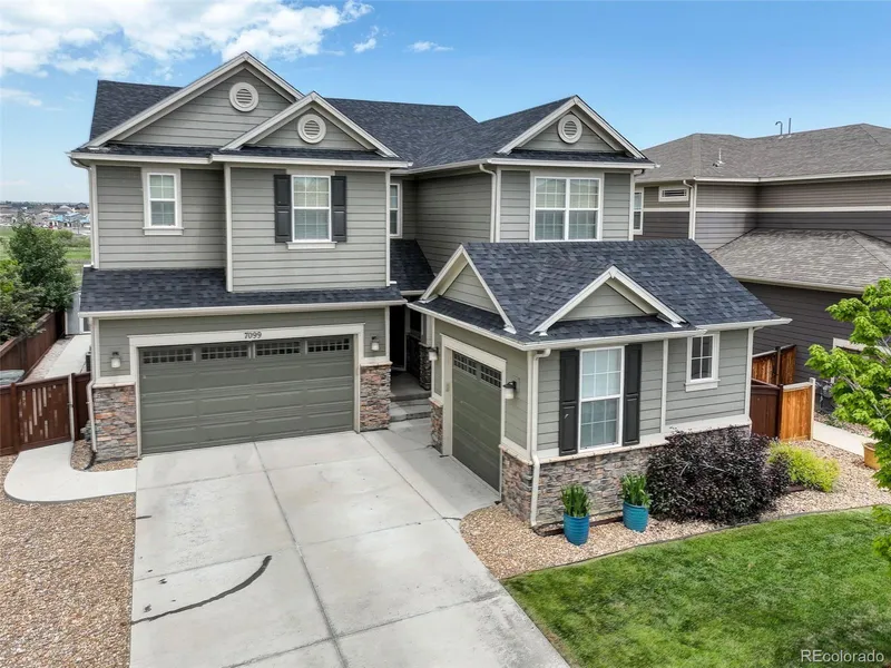 Welcome to this stunning 4-bedroom, 4.5 bathroom home in the desirable Aspen Reserve community, offering over 4,500 sq ft of beautifully designed living space. From the moment you enter, you'll be impressed by the thoughtful layout and high-end finishes throughout including the grand spiral staircase. The gourmet kitchen is a chef's dream, featuring ample counter space, new premium appliances, a large kitchen island, and an incredible amount of cabinet space, not to mention a spacious walk-in pantry. The open concept means the kitchen flows seamlessly into the living and dining areas - perfect for entertaining! Upstairs, a generous loft offers flexible space for a second living area, office, or playroom. The expansive primary suite includes a luxurious en-suite, 5-piece bathroom and an oversized walk-in closet. Whether you need a playroom for the kiddos, a movie night dream set up, or a space for out-of-town guests, the finished basement adds even more versatile living space. No matter where you find yourself in the home, you're sure to enjoy year-round comfort with dual-zone heating and A/C systems. Outside, the backyard features a spacious patio perfect for summer barbecues and entertaining as well as a large shed for extra storage. Let's not forget about the three-car garage of which completes this exceptional property. This home truly has it all, space, function, and style! Come home to 7099 E 123rd Place and elevate your living experience.