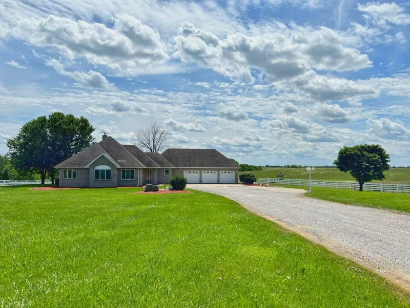 Not very often do acreages and a house like this come on the market! Dont miss your chance to own this well built 3 bed, 2.5 bath brick home with an attached 3 stall garage. The house features a full unfinished basement and newly updated furnace. Acreage consists of 71 acres+/- of beautiful pasture and a wooded creek line. There is a well stocked pond located west of the house surrounded by a horse track. Multiple outbuildings offer lots of storage or livestock opportunities . One building consists of 8 horse stalls with full living quarters up above. The options here are endless!