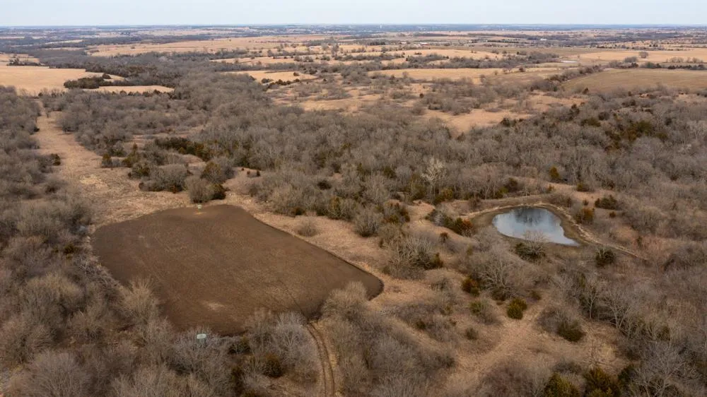 This has to be one of the most dynamite hunting farms under 80 acres in the state of Kansas! 71 +/- deeded acres and absolutely jam-packed with mature bucks and long-bearded gobblers, and is entirely made up of premium wildlife habitat. As you pull into the gated entrance, you'll notice the cabin and storage shed, with a nice graveled parking area greeting you right as you enter the property. The cabin comes complete and ready to use. It is powered by solar, has a conversion kit installed providing electricity, nice bunk beds, a sink powered by a rainwater catch system, and a cozy wood-burning stove to keep you warm during the fall months while you're hunting. As you head north from the cabin, you enter a 3 +/- acre food plot that's strategically located, drawing deer from the interior of the farm in daylight hours. You can access the Redneck blind on a 10 foot stand from behind a wall of trees making your access in and out of the stand flawless and useful for consecutive days of hunting. A 2,000+ lb feeder to stay on the property, alongside the Redneck blind, makes this a turnkey offering. The food plot could be expanded to 5 +/- acres or more and the trees have already been cleared if the new landowner wanted to add more groceries, otherwise, the visibility down the sendero north of the food plot makes for some exciting hunts and spectacular visibility! I can personally attest that this property doesn't just have bucks occasionally cruising through here, they live here regularly, and the trail camera history doesn't lie, it's full of mature game. The farm can be fully accessed on a side-by-side or 4-wheeler easily but has been left alone during its ownership to allow the deer and turkeys to feel comfortable. Surrounded by incredible neighboring habitats with big CRP fields, brushy draws, and an abundance of crop fields in the surrounding sections, this place is a central sanctuary and is truly a dynamite hunting tract. You will love this property, and every square inch of it screams hunting and recreation. The county road has chip and seal coverage to keep the dust down, and additional utilities are available, the blinds and feeder are included in the sale, the cabin is sold turn-key, a pond is on site, and the taxes are cheap. Give Shay Haddock a call today at (913) 222-4257 for your personal tour of the property, you will be glad you did!