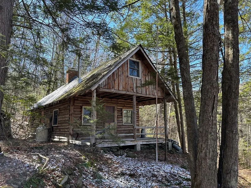 Tucked away in serene seclusion, this 1-bedroom, 1-bath log bungalow offers the perfect blend of rustic charm and natural beauty. Featuring an open floor plan with soaring cathedral ceilings and striking exposed beams, this home is full of potential and ready for your personal touch.Set on a stunning 66-acre parcel with conservation restrictions to protect its natural beauty, the property includes a peaceful pond, a babbling stream, and endless woodland to explore. A separate building once used as a sugar house adds character and opportunity-ideal for maple syrup making or creative repurposing.Whether you're seeking a quiet escape, a unique renovation project, or a nature-lover's paradise, this one-of-a-kind property delivers.