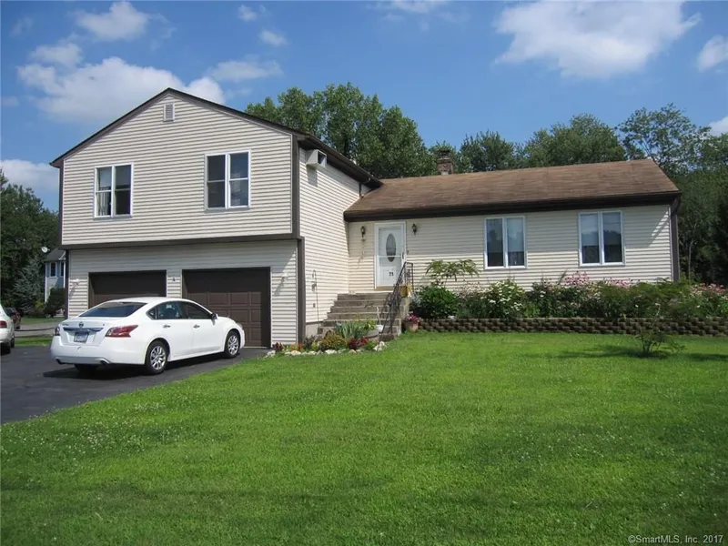 As you walk into the entrance foyer of the main level of this spacious one-owner custom built home you are greeted by an enormous living room with beautiful newer engineered hardwood floors, a large dining room with the same flooring as the LR and sliders that lead to a spacious deck, and a great eat-in kitchen with lots of cabinets for all your kitchen storage needs plus a butcher block island.Walk up a few stairs to the bedroom area of the home. You'll be impressed with the size of each bedroom.The master bedroom can easily accommodate king-sized furniture & you can enjoy your own master bath and walk-in closet. The 2nd bedroom is huge and measures 20x12. The 3rd bedroom is 12x15 with double closets.From the kitchen you walk down a few steps to the ground level family room with a fireplace. Off the family room is 1/2 bath/laundry room. In the lowest level is a massive rec room that walks out to the back yard. This room would make a perfect in-law apartment, home office, or man cave.The garage is oversized with plenty of extra space for a workshop or storage.Cool off with central-air that's 5+/- years old. Other updates include the furnace & some newer windows.The lot is level and large and the home is located on a low-traffic street that's within close proximity to highways,shopping,National Blue Ribbon award-winning Thomas Hooker Elementary School,and the Wallingford town line.Some updating and decorating will turn this house into a home you will enjoy calling your own.