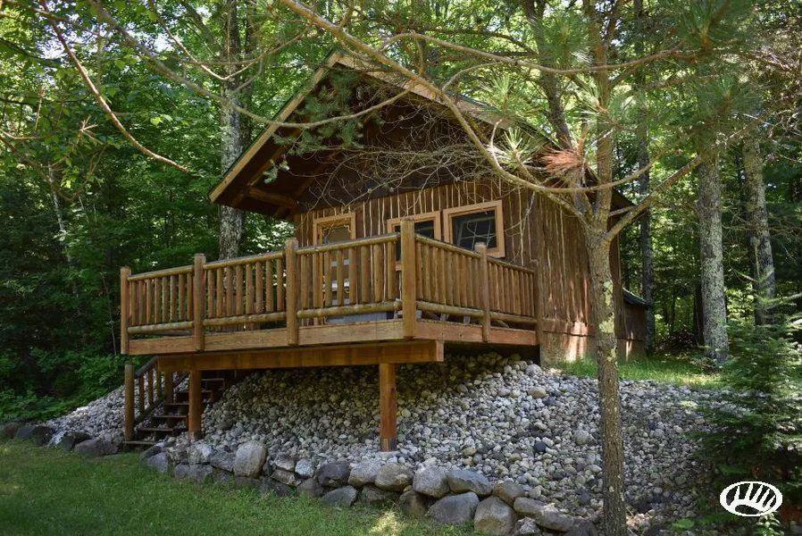 - 256 square foot cabin with 96 square foot lot and 208 square foot deck