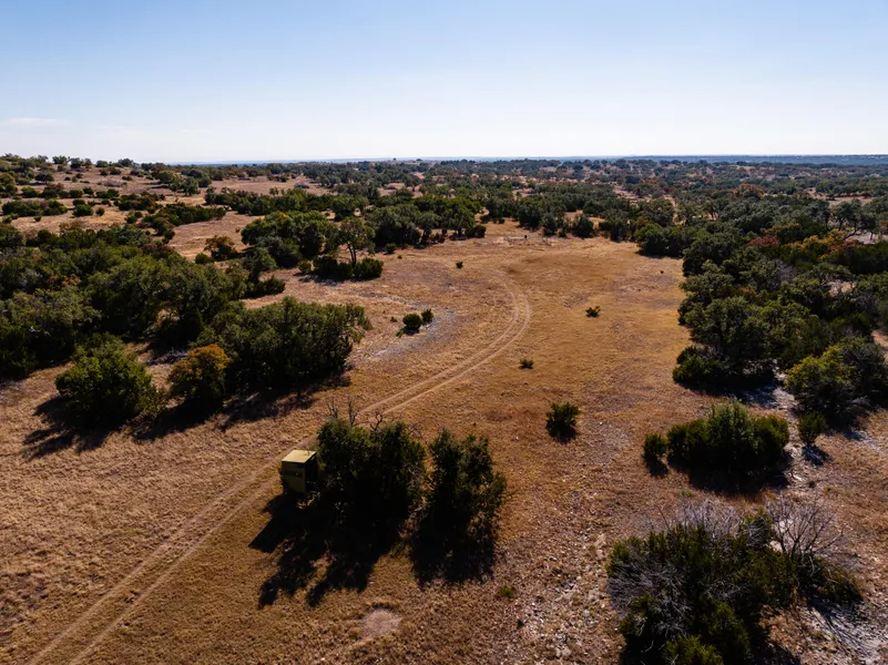 The ranch has rolling terrain with oak trees and scenic views. Lo perimeter fencing encloses the property and is further divided into five cross-fenced pastures in a "wagon wheel" configuration, promoting efficient livestock rotation. There are also internal ranch roads ensuring easy access. Approximately two miles of seasonal creeks wind through the property, along with a small pond and several water troughs that support both wildlife and livestock. The ranch is home to abundant wildlife, including whitetail deer, hogs, javelina, and turkey, making it an ideal property for hunting, cattle grazing, or recreational pursuits. Five strategically placed hunting blinds are in place to enhance the hunting experience.