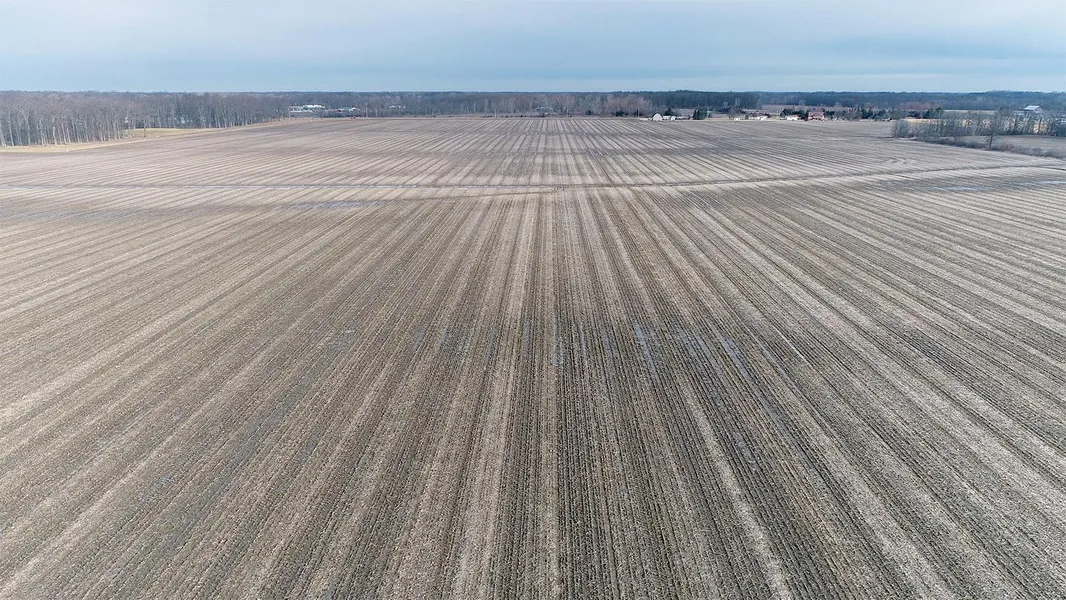 Tract 1: 50 ac Milford TWP. - Sec. 22: At the southwest corner of SR 249 and Lake Rd (113), southeast of Edgerton, OH. Tract has approx. 1325 ft. along 249 and over 1600 ft. along Lake Rd. Tract has approx. 44 tillable acres w/ some low and wooded areas w/in. Soils are mostly Blount loam and Glynwood loam w/ some muck soils in the low area in the middle. Tract has some rolling terrain, w/ some possible elevated building sites. The low area in the middle could be possible pond sites. This would be a great investment opportunity for future homesites!