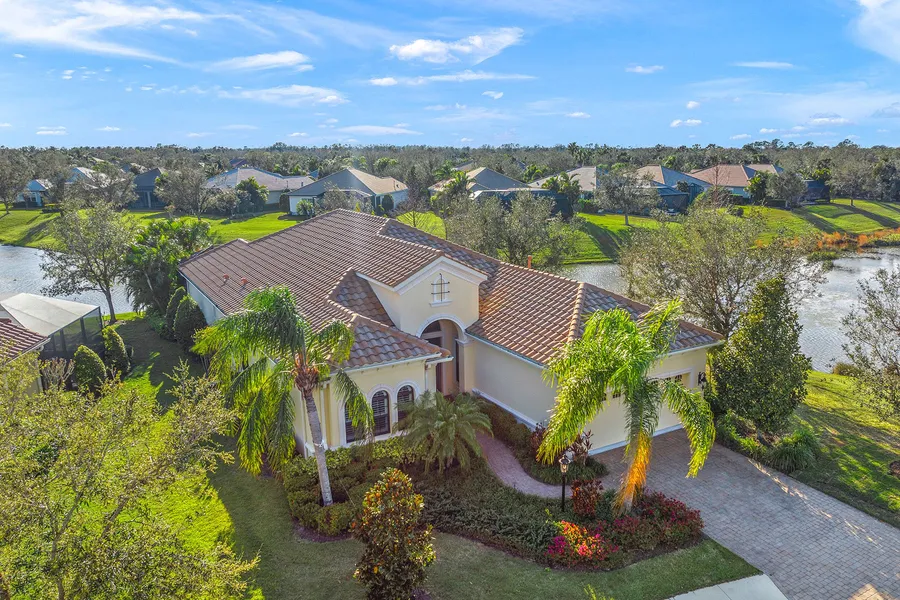 Driving through the gates of prestigious Country Club East, you will arrive at the Viano del Mar built by Neal Signature Homes. This meticulously maintained three-bedroom custom residence, complete with an office-den and 2.5 baths, is on a private cul-de-sac, offering peace and tranquility. As you enter through the double entry doors, you will be greeted by a grand foyer and gallery leading you into the elegant dining area and sprawling great room where your eyes meet serene outdoor living. This one-owner home features extraordinary quality on the exquisite corner lot, overlooking 180-degree scenic lake and greenbelt views. Over a quarter acre, the lushly landscaped property enhances the sense of privacy. Each room is adorned with decorative detail, volume ceilings, rich crown moldings, distinct open spaces and an abundance of natural light throughout. Window treatments, plantation shutters and automatic, custom Silhouette blinds adorn windows and sliding glass doors. The kitchen would delight the cultivated epicurean, showcasing stainless steel appliances, custom wood cabinetry, granite counters and sprawling breakfast bar, overlooking the sparkling, turquoise heated pool and spa. A well-appointed main-level primary suite offers a retreat with two walk-in, custom closets, a bay window and en-suite bath with dual sinks, granite, walk-in shower and soaking tub. Additional amenities include a spacious laundry room, paver walkways and patios, storm shutters, front impact glass windows and automatic poolside awning. The expansive outdoor living space is ideal for entertaining, complete with an outdoor kitchen for alfresco dining. An exemplified level of perfection that is entirely uncommon. Residents can enjoy community amenities at The Retreat, with a clubhouse, fitness center, resort-style pool and nature walking trails. Available Lakewood Ranch Country Club membership, two clubhouses, fitness centers, restaurants, three 18-hole championship golf courses, tennis, pickleball, lap pool, along with social events. Ritz Carlton Club memberships, with Tom Fazio-designed 18-hole championship course as another option. Conveniently near Waterside, University Town Center, dining, shopping, schools and parks are conveniently minutes away. Enjoy visiting westerly white sandy beaches, barrier islands and easy access to Interstate 75 and Sarasota International Airport.