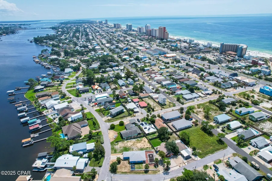 Welcome to your perfect Panama City Beach escape! This spacious 3-bedroom, 2-bath coastal retreat is ideally situated between two of PCB's most iconic natural treasures--the sparkling Gulf of Mexico and the serene Grand Lagoon. Just a short stroll to the sugar-white sand, this home sits in the heart of a thriving short-term rental zone, offering the ideal blend of personal paradise and income potential. Inside, you'll find a bright and breezy open layout with granite countertops, tasteful coastal decor, and a fully stocked kitchen ready for your next gathering. This beach house comes fully furnished and is thoughtfully designed to sleep up to 12 guests--perfect for families, friend groups, or vacation renters. Step outside to enjoy the freshly painted front porch and garage, a fenced-in backyard for added privacy, and ample parking for multiple vehicles, boats, or golf carts. Whether you're grilling out, storing beach toys, or simply relaxing under the stars, this outdoor space delivers. Already enrolled in a successful rental program, this property is truly turn-key--just bring your flip-flops and let the good times roll. Whether you're looking for a savvy investment, a second home, or a forever vacation, this one checks every box!