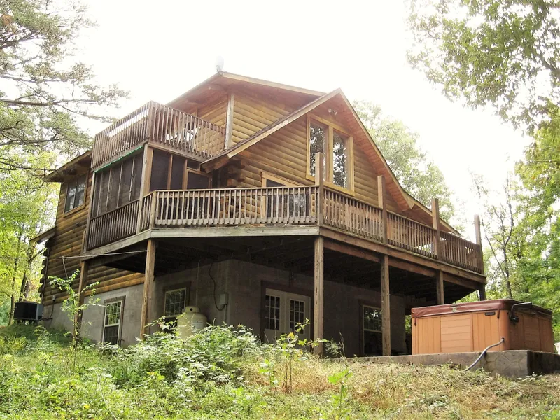 Home away from home-cozy and convenient to Berkeley Springs & 522. Warm wood interior feels so inviting with gas stove at the center. Open floor plan, multiple porches, decks, lower patio w/firepit & hot tub-great places to enjoy outdoors & entertaining. Hardwood floors, cathedral ceilings, loft sitting area-could be used for more sleeping area, full basement ready to finish for even more space!