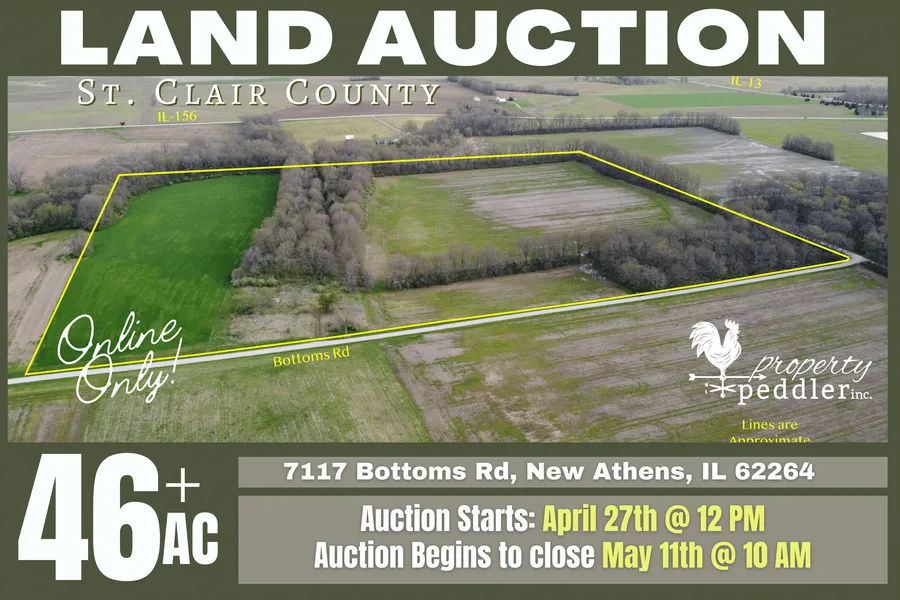 Research Parcel InformationRoute 13 North of New Athens to Route 156, West. Take first Left, to turn south on Bottoms Rd. Follow through the first bend. Property at second bend.