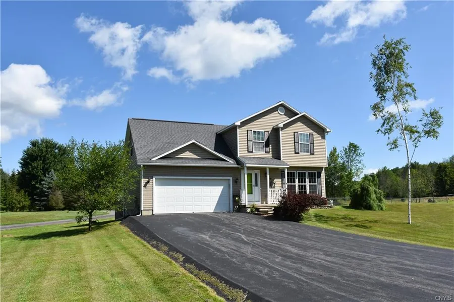 Wonderful opportunity to own this 2005 "custom" built home with quiet country setting on 1.373 Acres!! Conveniently located 2 miles from Bridgeport (Oneida Lake)! Light and Bright "open Layout" with lots of windows! Features include an open foyer with ceramic floor. Oversized great room with triple windows, open to the "oak" kitchen with angled peninsula breakfast bar and dining area with bay window and slider to the deck. 1st floor laundry/mudroom. Unique "split" staircase to 2nd floor bonus room! Master suite with private full bathroom and walk-in closet along with 2 more bedrooms and another full bath finish the second floor. The 2 car garage is finished and insulated as well. Full, dry basement ready for your finishing touches. Large portion of the yard is fenced in and includes the 12 x 20 "custom" built Amish shed. Showings to start Friday the 29th.