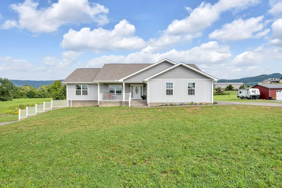 Welcome to this stunning 2022 custom-built home, situated on a cleared and level 1.2 acre+/- lot, with lovely farm and mountain views! This property has a little bit of everything, including main-level living with an open floorplan, vaulted ceilings, quartz countertops, primary bedroom with a walk-in closet and ensuite, two spacious additional bedrooms and a bathroom, laundry, a 2-car garage, and covered front AND rear porch/patio spaces!Head down the stairs for the third bathroom, utility(SO MUCH STORAGE SPACE), the third garage space and even more living space that can be used for an additional bedroom/bonus room/gym/office/etc. Located only minutes from exit 36 of I-81, Knoxville, Gatlinburg, Asheville, and Bristol are just an hour away! Even closer are the historical towns of Greeneville and Jonesborough, the Cherokee National Forest, hiking, horseback riding, biking, ATV trails, campgrounds, shopping, restaurants and much more!ALL APPLIANCES CONVEY (including washer and dryer). RING doorbell does not convey.All information was retrieved from 3rd party resources. Buyer and buyer's agent to verify.