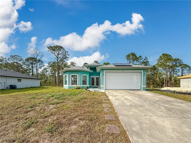 Check out this beautiful house located in East Lehigh Acres with easy access to SR 82 and close to shopping centers and schools. This house features a brand new roof installed in 2024 with solar panels proving low electric bill for the house. As you walk inside you can't help but notice the beautiful floor plan, the vaulted ceiling and 2 living rooms for your relaxation and dining, nice beautiful windows allowing plenty of sunlight, and a big kitchen with plenty of cabinets. This house is very spacious with a big master bedroom and 2 nice size rooms and big closets. The seller is motivated, schedule your private showing today.