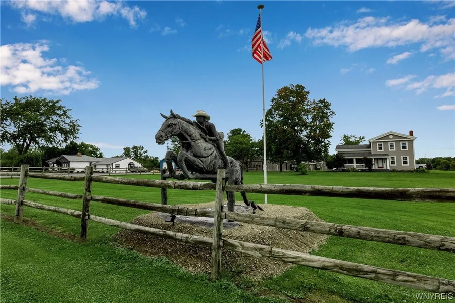 WOW! THIS IS IT! 30 acres with a century old farm house with unlimited potential. Additional acreage up to 200 acres also available. 25,000+ sq/ft of heated and insulated buildings including water and electric. Owners man cave, rec/center lounge, future bar room, storage bays, including a 40' by 120" barn with 12 stalls all connected with bathroom/kitchen area. The 80' by 200' riding arena is also insulated and heated. 1.5 acre stocked pond with electric for up to 6 RV's/Campers. The pond and pastures all have bright LED lighting including split rail and high tensile wire fencing. Potential use includes: corporate retreat, recreation center, wedding venue, antique car collection, storage, kennel, boarding facility and much more. East Aurora School District.