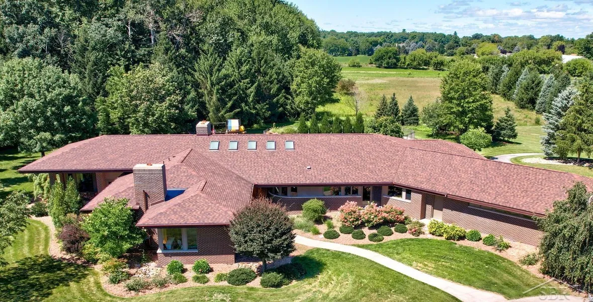 MID CENTURY MODERN - Enjoy the experience of decompress and release in this extraordinary 5180 sqft, 5 bedroom, 4.5 bath home inspired by Frank Lloyd Wright with an architectural identity all its own. Nestled on 10 acres, this custom and over the top-quality built home features a mid-century modern design with civic undertones, variations of ceiling heights, a curved window wall, brick and cherry interior, and views of nature from every room. Special features include heated flooring in the kitchen, bathroom, and lower level, large butler pantry, first floor laundry, great room with FP, spectacular dining room, family room with deck, and primary suite fit for a king with FP, private office, two walk-in closets and make-up vanity. The finished walkout lower level includes a large space for music room or office, large bedroom, bath with steam shower, work out area, game room, and abundant storage. The 5th bedroom can be converted to den or MIL suite. Attached 3 car garage, alarm system, inground pool with outside bath, fire pit, shed, city water, generator, Frankenmuth Schools.